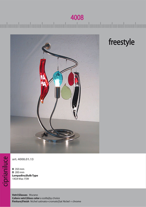 Il vetro di Murano nelle sue molteplici applicazioni. L’interpretazione personale, il design innovativo, l’accattivante sensazione di ottenere un oggetto unico, forgiato come un’opera d’arte, irripetibile. Intendiamo così plasmare forme semplici con materiali di altissima qualità, grazie al saggio utilizzo di vetro in pasta soffiato e creato da maestri che hanno fatto della loro passione un lavoro. Tutto ciò con materie prime di qualità, come il rame, l’ottone, l’acciaio. Nella sicurezza di un prodotto in conformità con gli standard più severi: cavi elettrici in doppio isolamento, portalampada in ceramica, trasformatori toroidali. Possibilità di personalizzazione tramite la scelta del colore del vetro. Prodotti esclusivi made in Italy al 100%.